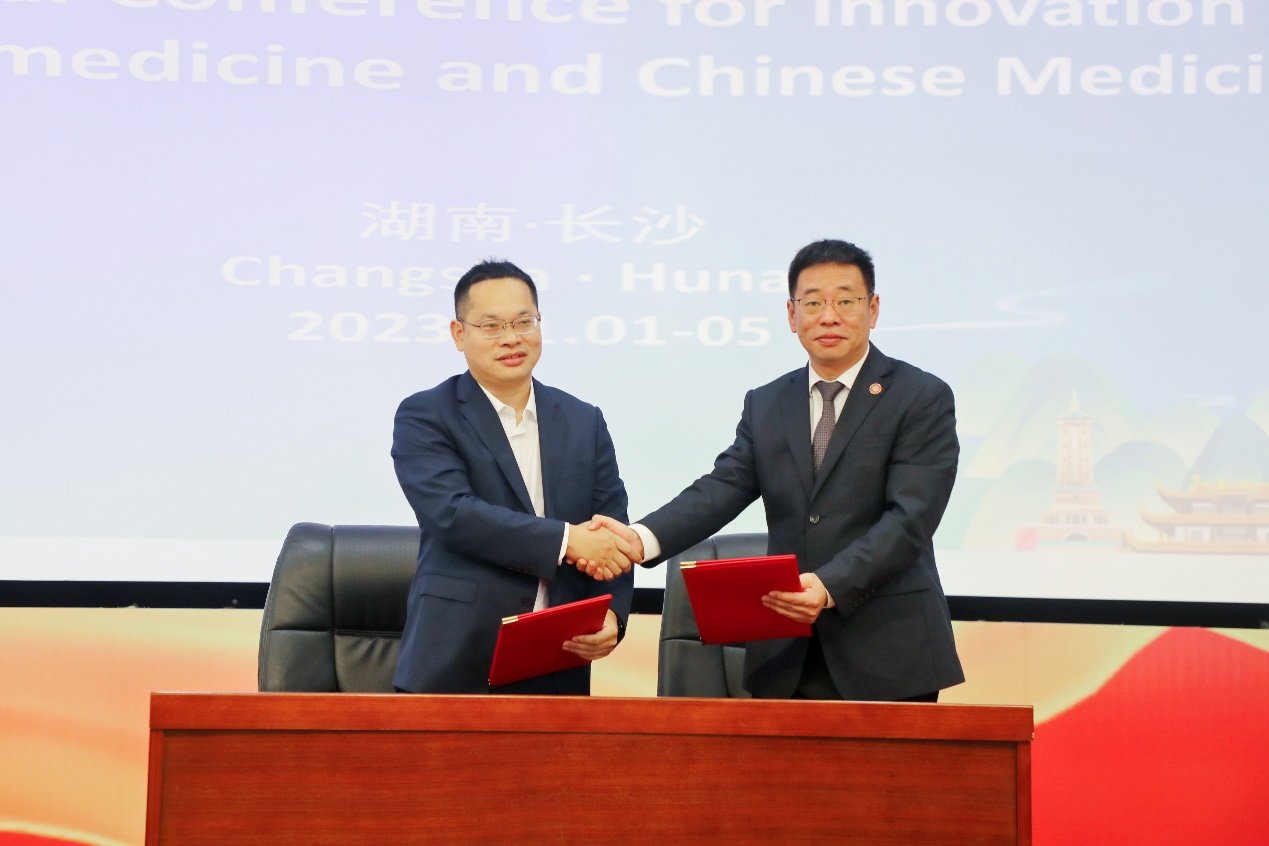 现场,我校与慈利县张家界国仲生物科技有限公司合作共建成立的“国际杜仲研究中心”举行了签约仪式,研究中心首批产学研项目亮相签约仪式,包括yl23455永利官网李斌教授、田星副教授和袁汉文博士与中心的合作项目,分别为《杜仲抗衰老活性成分筛选、药理活性及作用机制研究》、《慈利杜仲植物基功能性无糖饮料加工工艺的研究及其品质评价》以及《杜仲不同部位质量标准研究》。