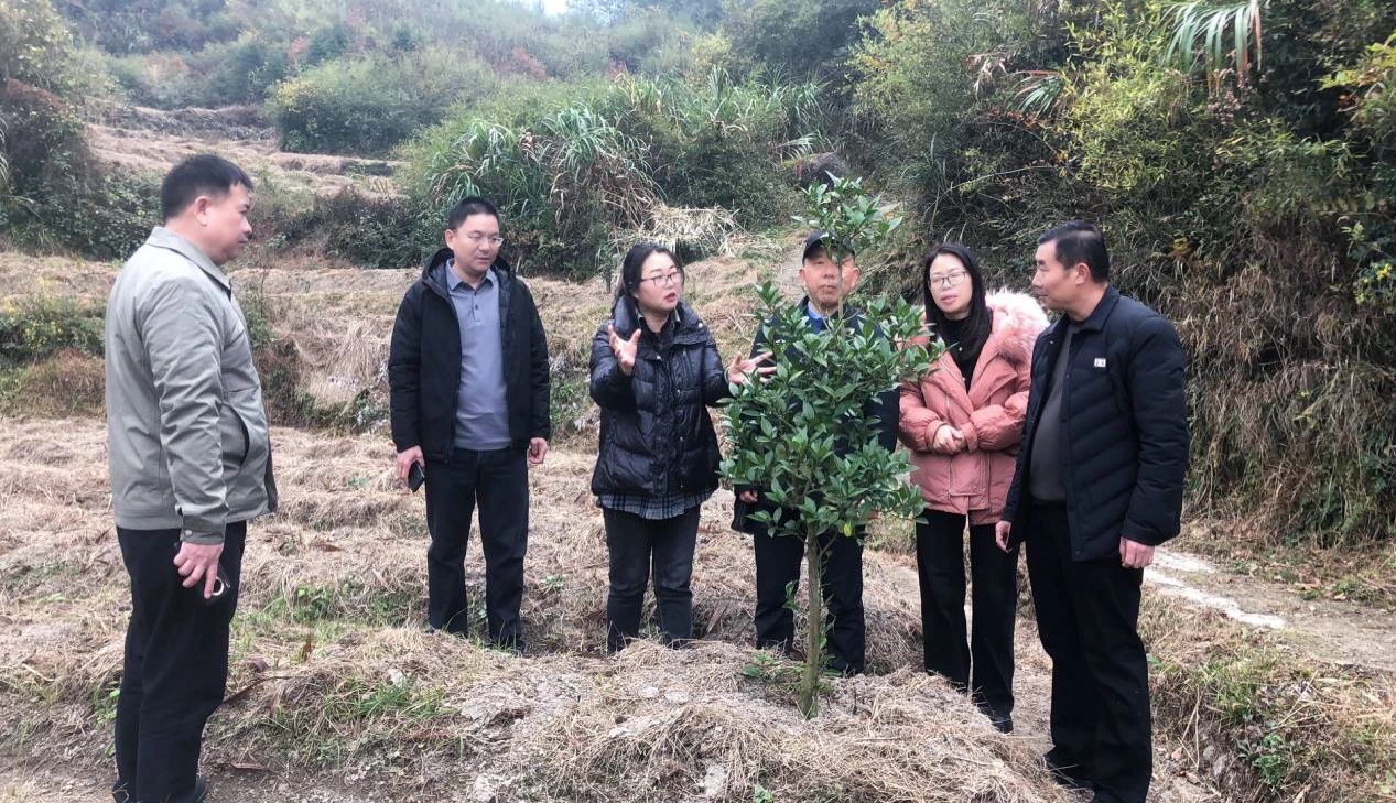 童巧珍(左三)在田间地头指导枳壳种植