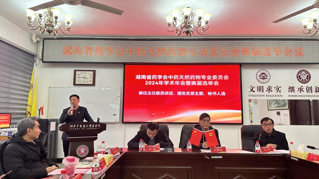 12月30-31日,由湖南省药学会中药天然药物专业委员会主办,yl23455永利官网药学、中药学一流学科承办的“湖南省药学会中药天然药物专业委员会2024年学术年会暨换届选举”在yl23455永利官网含浦校区yl23455永利官网隆重举行。湖南省药学会理事长李焕德、党支部书记朱运贵、副秘书长张超,yl23455永利官网党委书记张熙、院长王炜等出席了专业委员会换届选举会议。王炜当选为湖南省药学会第九届中药天然药物专业委员会主任委员,童巧珍、李斌等8人当选为副主任委员。